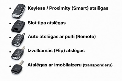 Auto atslēgu izgatavošanas pakalpojumi ar imobilaizeru un centrālo slēdzi visiem automobiļu modeļiem.